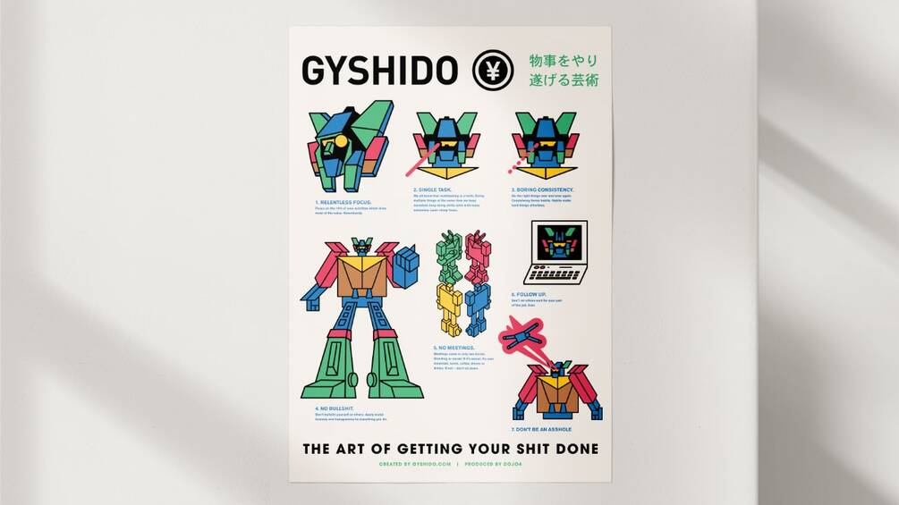 This is the poster that launched a thousand shipped projects. The one that turned “Don’t Be An Asshole” from office joke to operating principle. It’s playful, powerful, and impossible to ignore—just like the GYSHIDO philosophy itself.